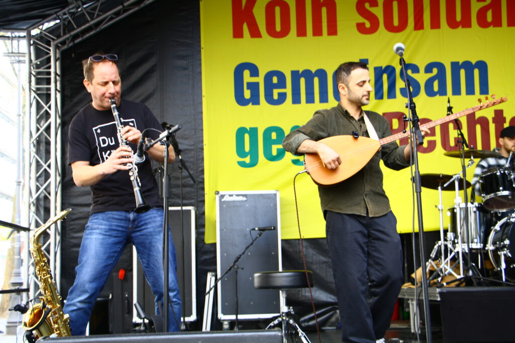 Wenn vier Musiker aus Syrien, Iran sowie dem Irak und fünf deutsche Musiker aufeinander treffen, um gemeinsam zu musizieren, dann klingt das ganz schön bunt. Bunt ist die Mischung aus kurdischer und arabischer Folklore gemischt mit „westlich“ geprägtem Rock, die Musikherzen höher schlagen lässt. Kurz: Buntes Herz. Angelehnt auch an eine Initiative des Dreikönigsgymnasiums namens „Buntes Herz“, welche eine Kooperation mit geflüchteten Menschen in Köln-Ehrenfeld eingegangen ist.